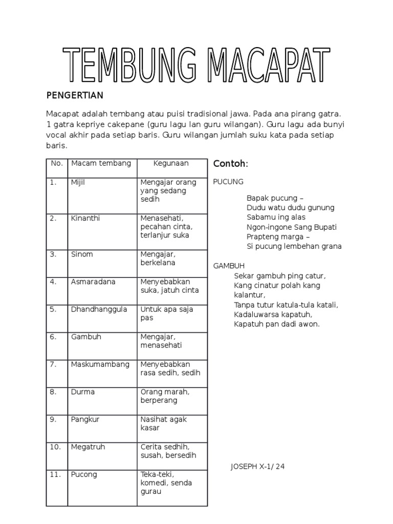 CONTOH MACAM TEMBANG MACAPAT (Guru gatra, guru lagu lan guru …