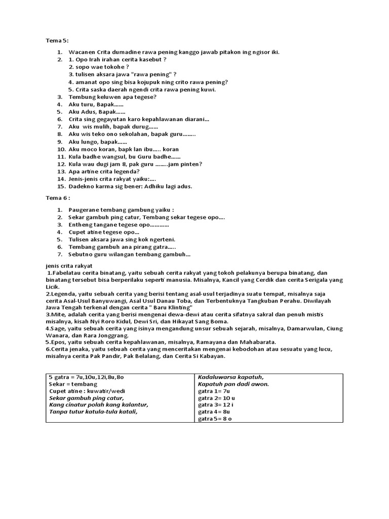 Soal Bahasa Jawa Bab Serat Wulangreh Pupuh Gambuh Kelas 8 Semester …