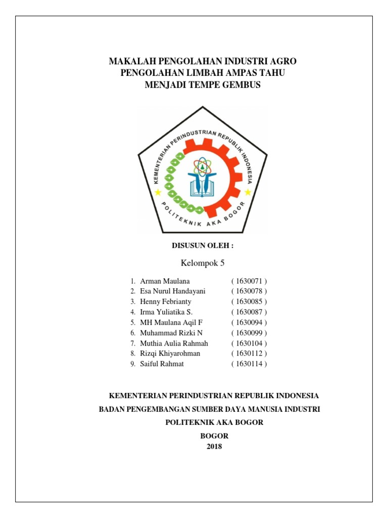 PDF) Teknologi Pembuatan Tepung Ampas Tahu Untuk Produksi Aneka …