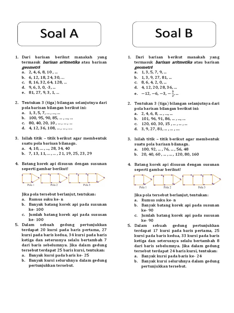 Contoh soal pola bilangan, barisan bilangan dan pembahasannya – Soalfismat.com