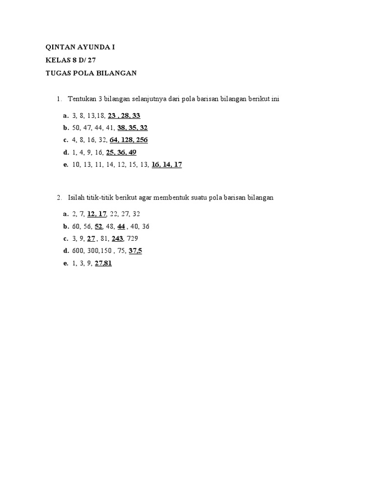 Pola Bilangan Activity 1 worksheet