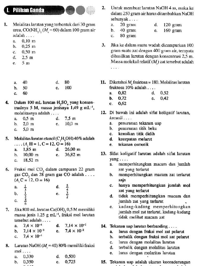 Soal Latihan UTS Kimia Kelas XII bab sifat koligatif larutan