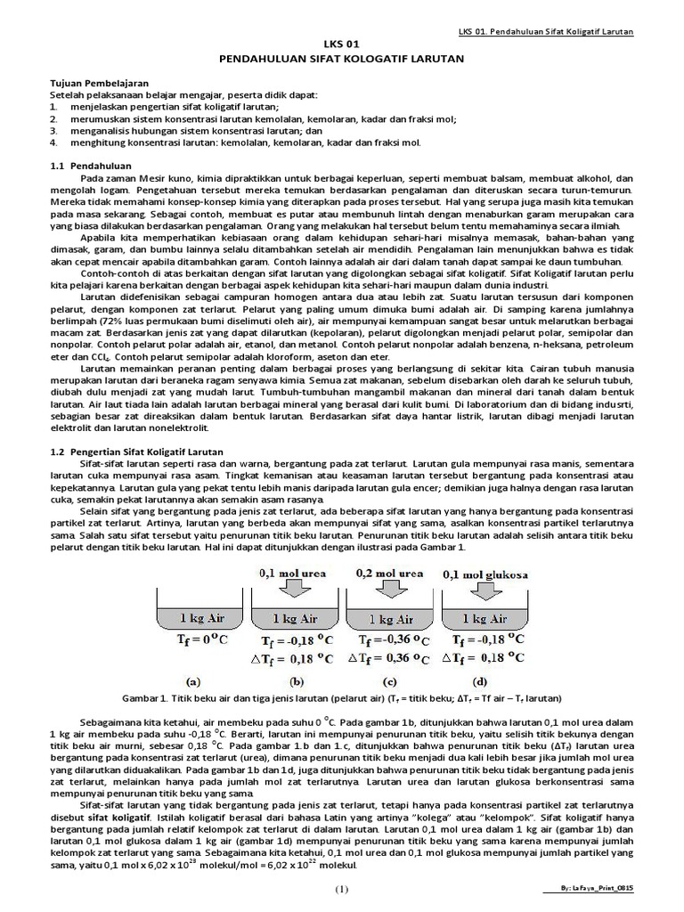 LKS 1 Pendahuluan Sifat Koligatif Larutan