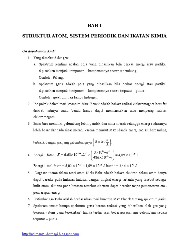 Bab 1. Teori Atom Bohr dan Mekanika Kuantum – CHEMISTRY LEARNING