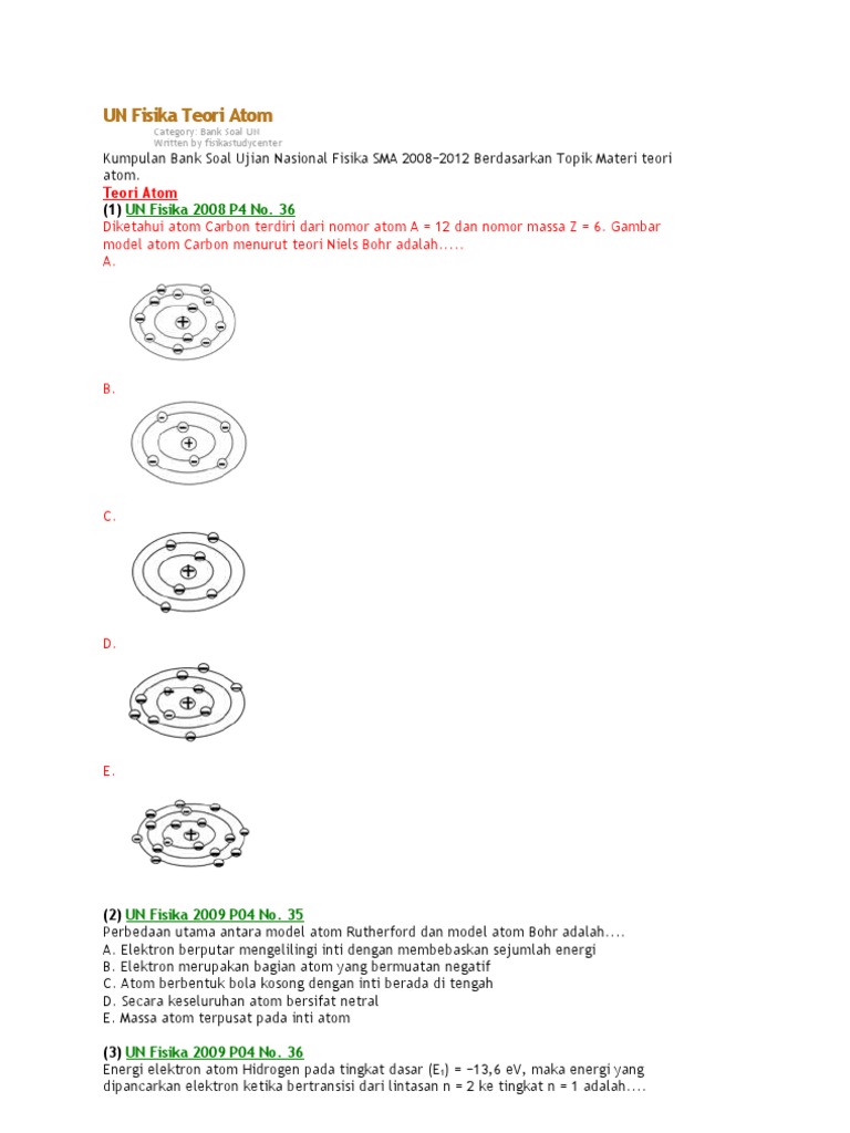 Soal Siap UN Fisika Teori Atom