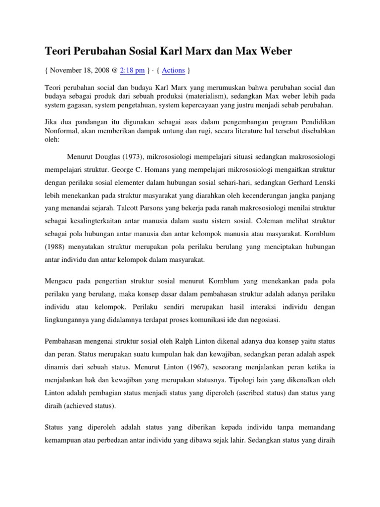 Teori Perubahan Sosial Karl Marx Dan Max - [DOCX Document]