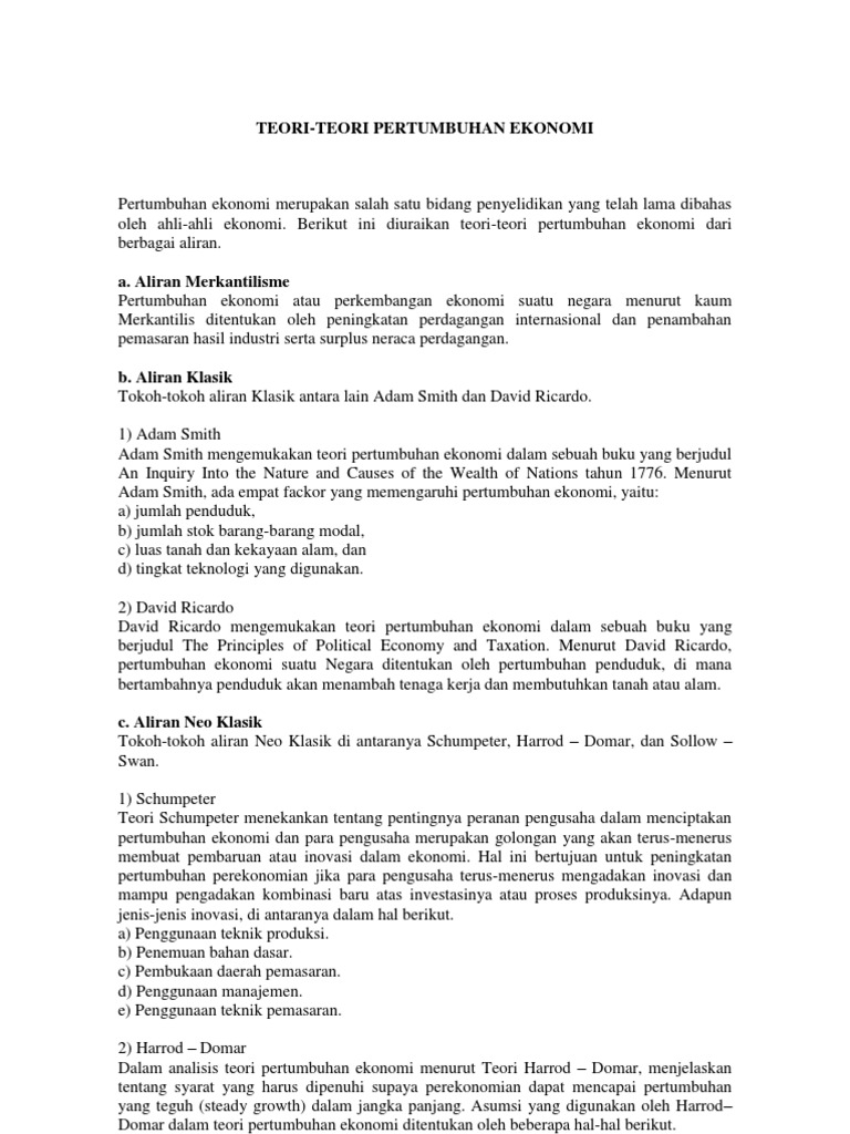 DOC) TEORI PERTUMBUHAN EKONOMI MENURUT PARA AHLI | Ika Novita Sari …