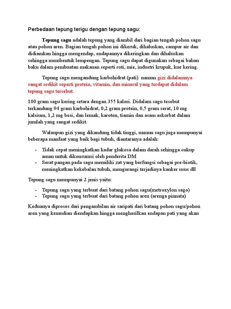 Perbedaan Tepung Terigu Dengan Tepung Sagu