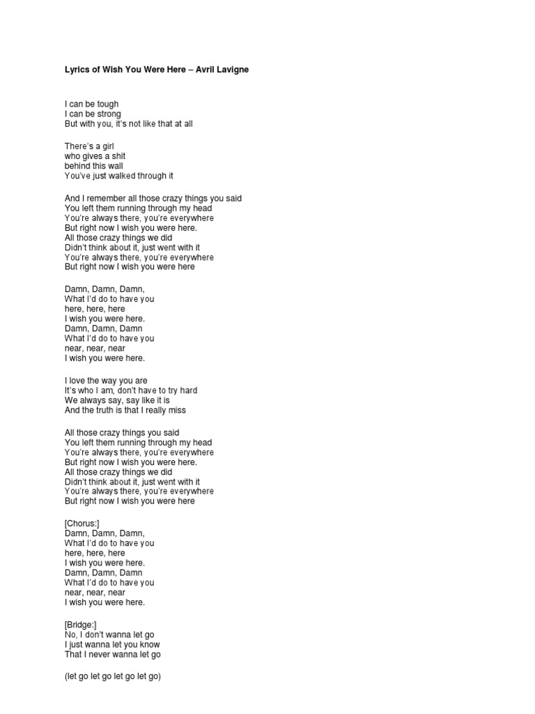 Teks Wish You Were Here Avril - Berbagai Teks Penting