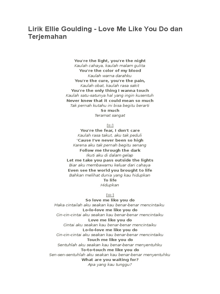 Lirik Lagu Love Me Like You Do Dan Terjemahan