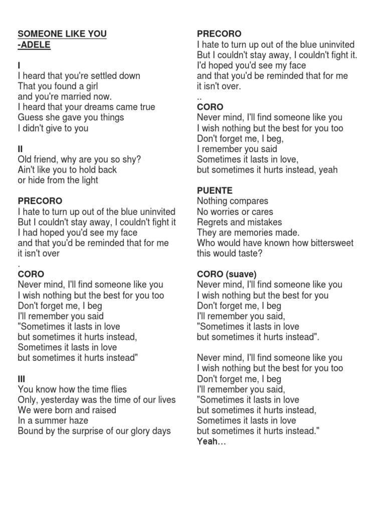 Figurative Language in Songs | Someone like you lyrics, Adele someone like you, Yours lyrics