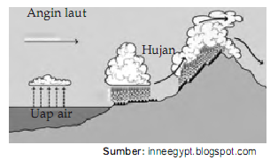 gambar proses terjadinya hujan tipe orografis - Brainly.co.id