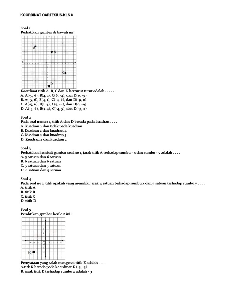 Contoh Soal Koordinat Kartesius Kelas 8
