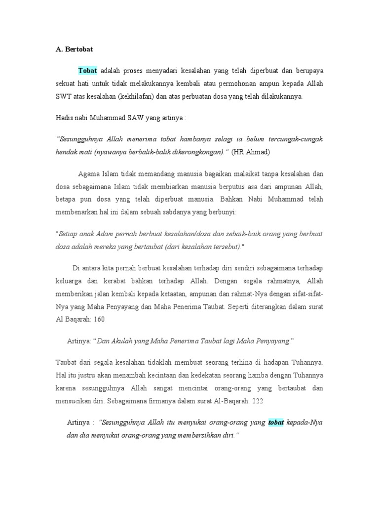 Kumpulan Makalah Jurusan Tafsir Hadits: TAUBAT