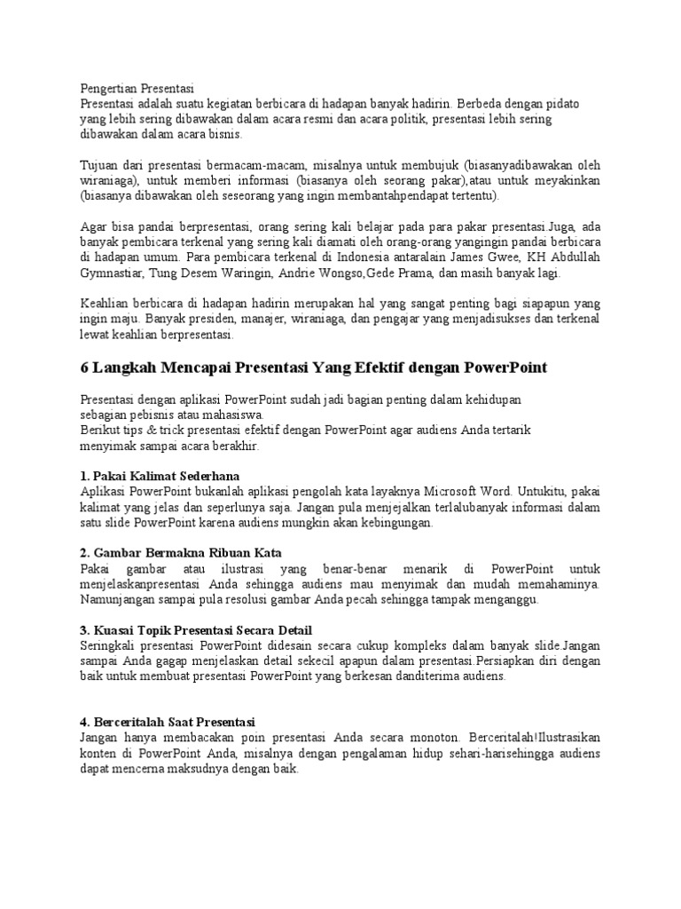 Pengertian Presentasi.docx - A Pengertian Presentasi Presentasi ilmiah adalah penyajian karya tulis atau ilmiah seseorang di depan forum undangan atau | Course Hero