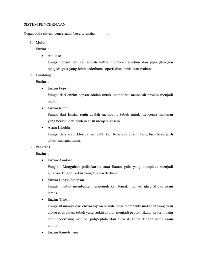 Enzim-Enzim Pencernaan dan Fungsinya, Fungsi Hati, dan Pankreas …