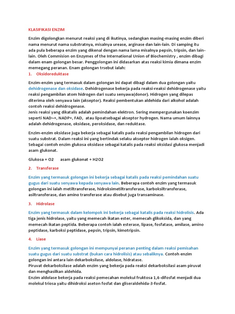 Klasifikasi Enzim Berdasarkan Fungsinya