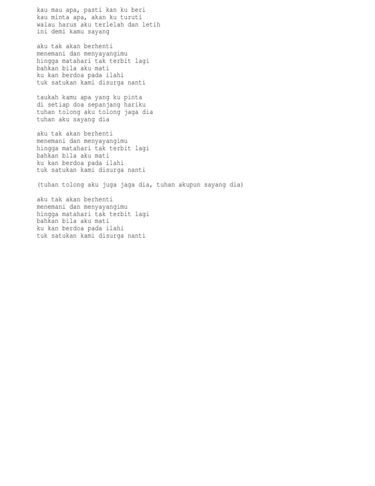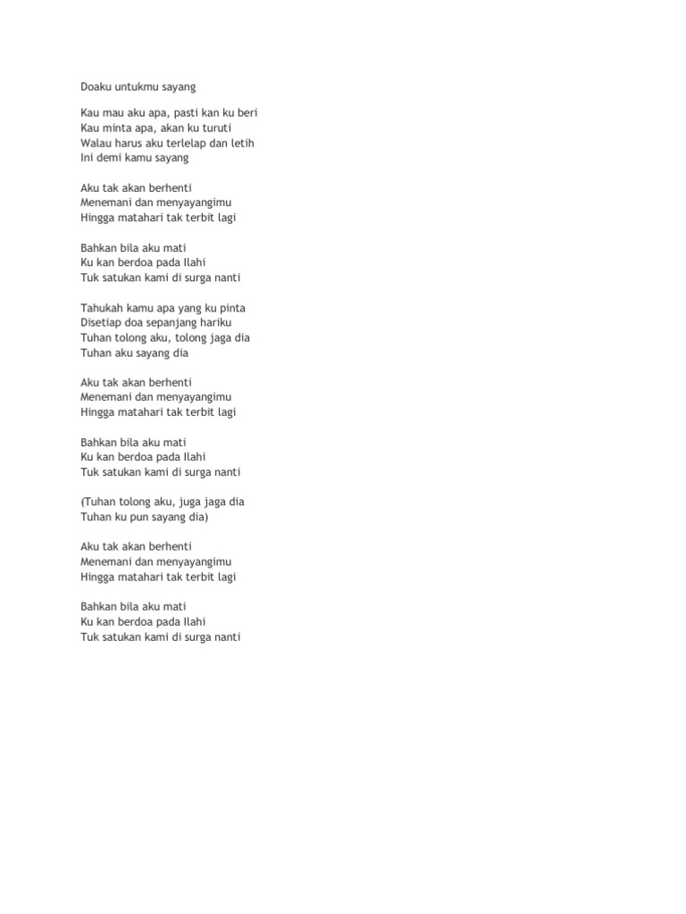 DOAKU UNTUKMU SAYANG (TUHAN TOLONG AKU TOLONG JAGA DIA) Lyrics …