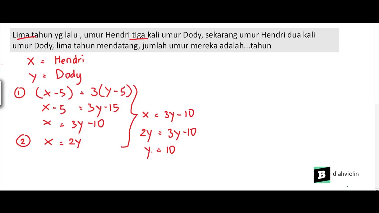 5 yg lalu , umur hendri 3 kali umur dody, sekarang umur hendri 2 …