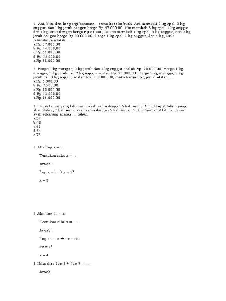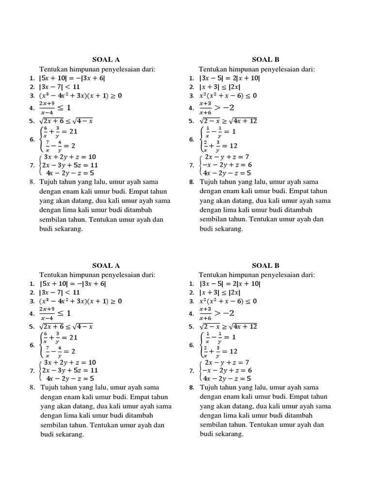 Lat Soal Persamaan Linier Kls 10
