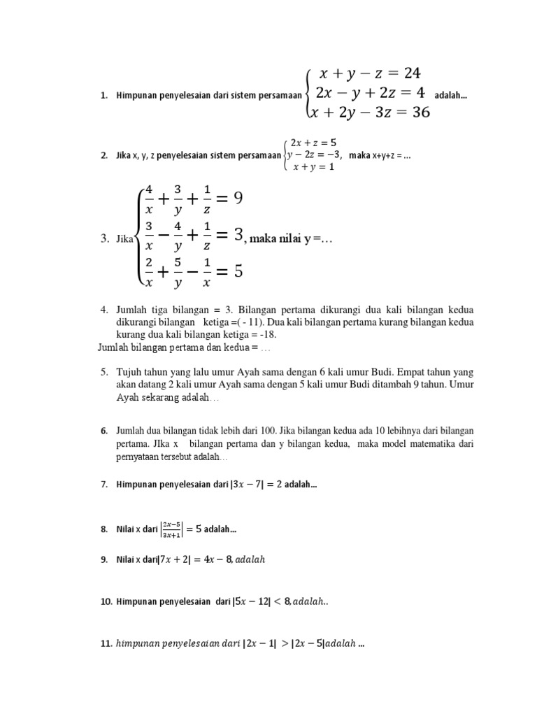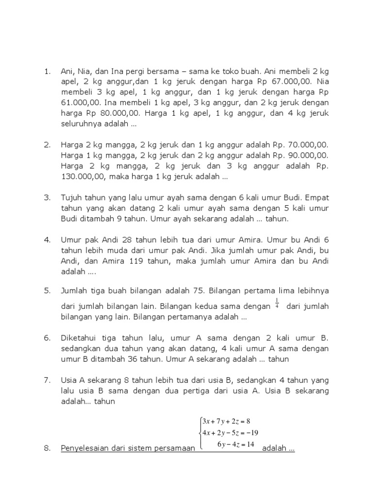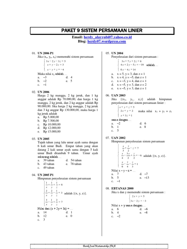 9.PaketSoalBabSistemPersamaanLinier