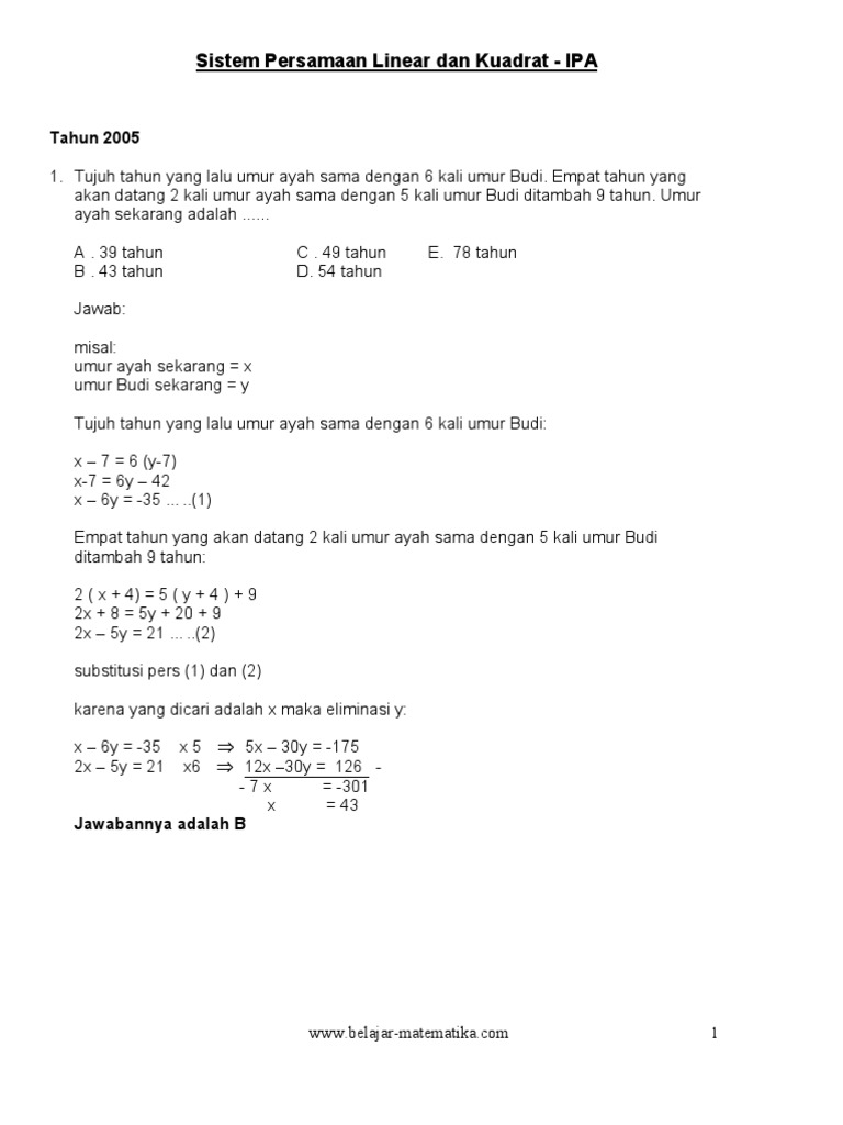 Sistem Persamaan Linear Dan Kuadrat - IPA