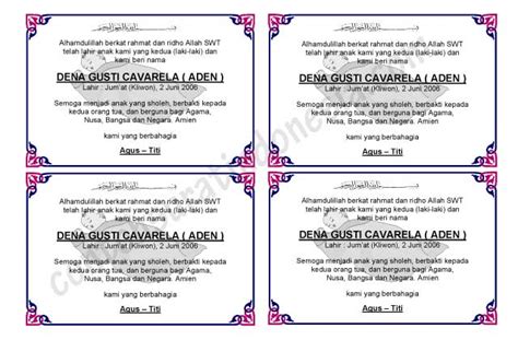 Contoh Kartu Ucapan Aqiqah Berwarna Versi Ms Word | Cv kreatif …
