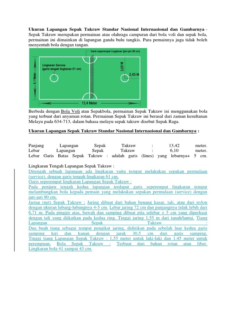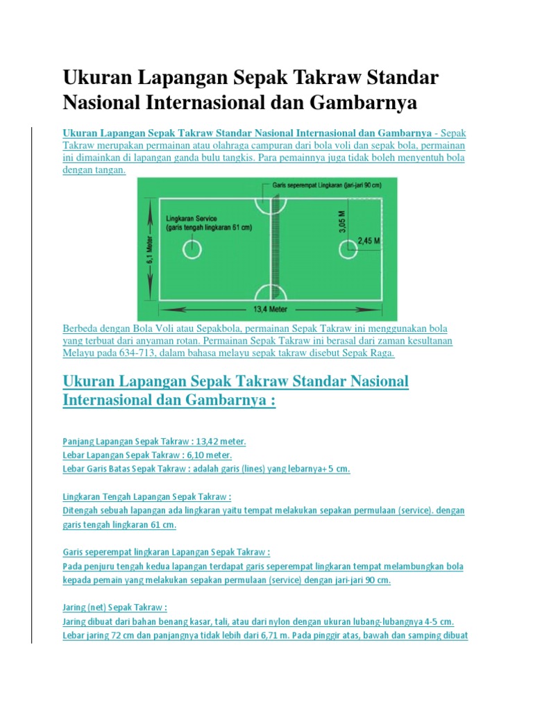 Ukuran Lapangan Sepak Takraw Standar Nasional Internasional Dan …
