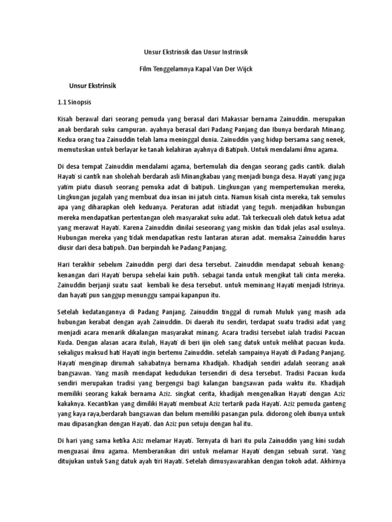 unsur intrinsik tenggelamnya kapal van der wijck karya buya by …