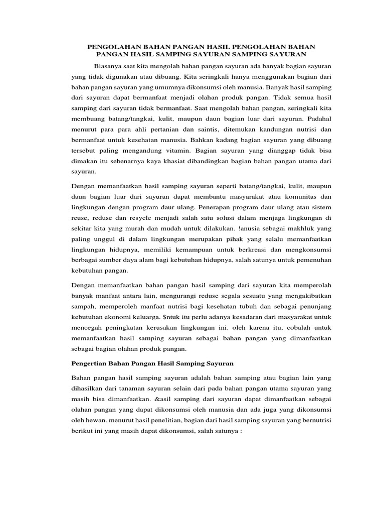 PENGOLAHAN BAHAN PANGAN HASIL SAMPING SAYURAN …