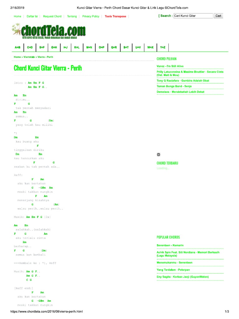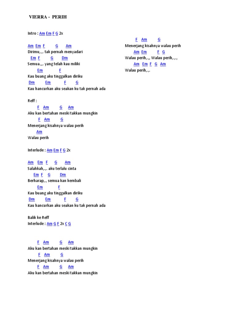 Siti Kibo - CHORD VIERRA PERIH Intro : Am Em F G 2x Am… | Facebook