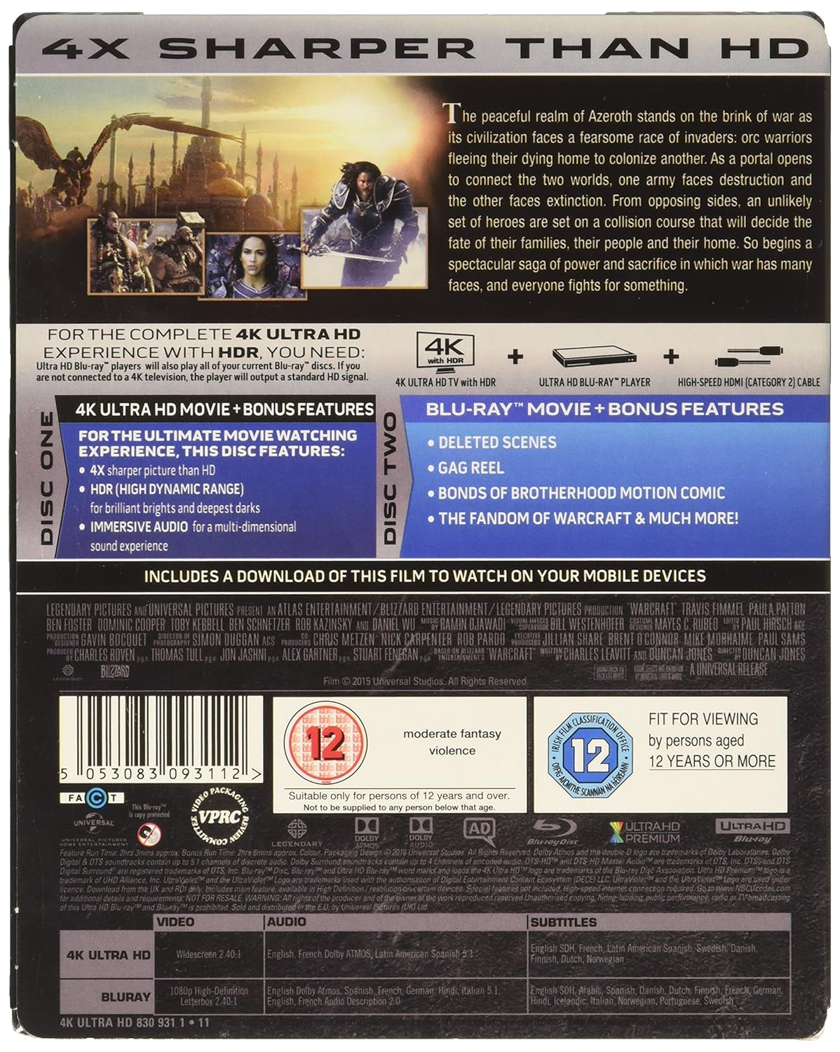 Warcraft: The Beginning (4K UHD Blu-ray + Blu-ray + … - Amazon.com