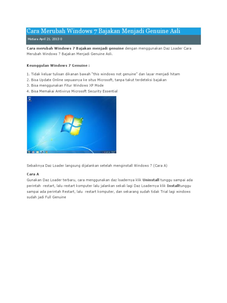 Cara Merubah Windows 7 Bajakan Menjadi Genuine Asli