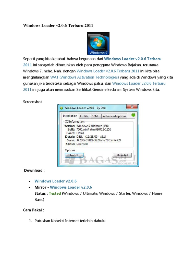Windows Loader v2.0.6 Terbaru 2011
