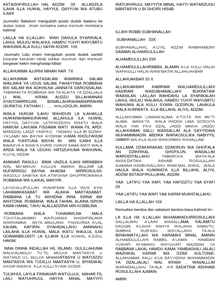 PDF) BACAAN SETELAH SHOLAT FARDHU (BACAAN YANG PANJANG) & DO’A | Mukshin Himura - Academia.edu