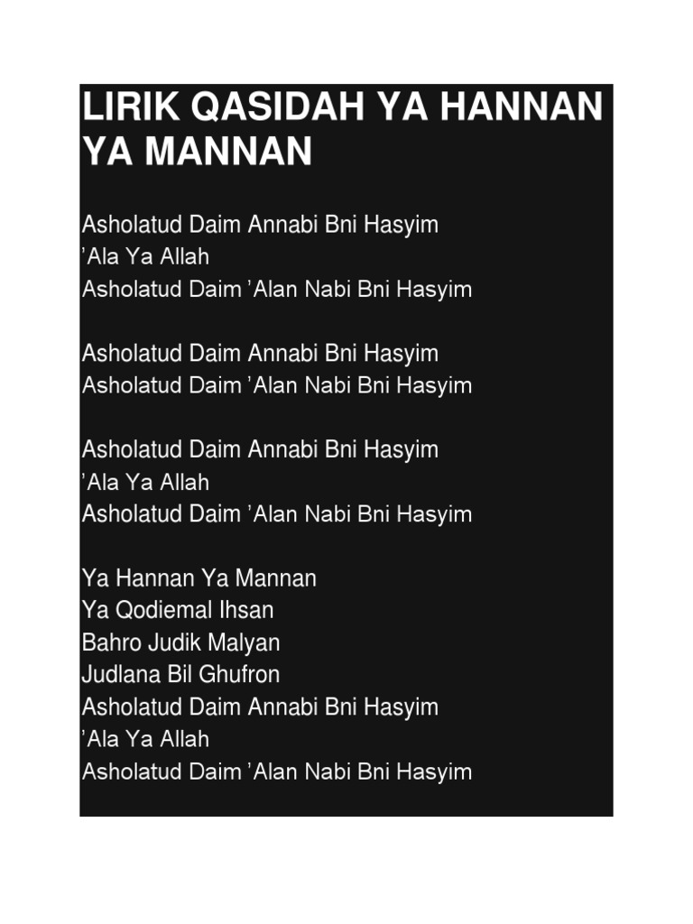Lirik Qasidah Ya Hannan Ya Mannan vvbbb - [DOCX Document]