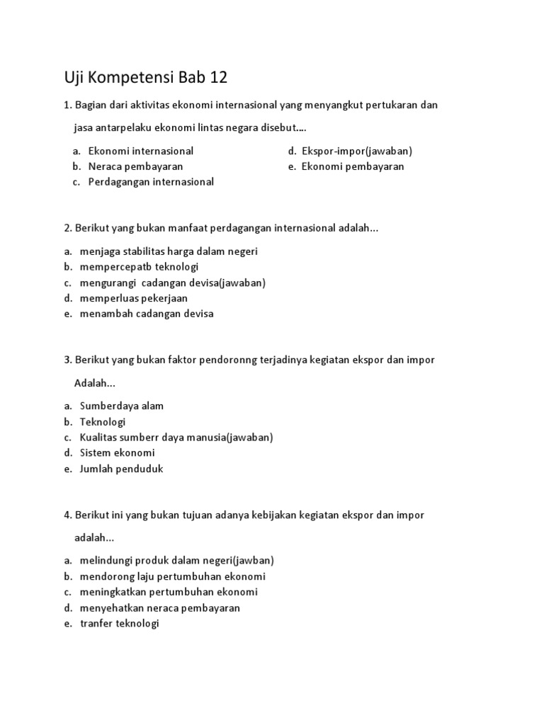Soal Perdagangan Internasional Kelas XI dan Kunci Jawaban | MATERI …