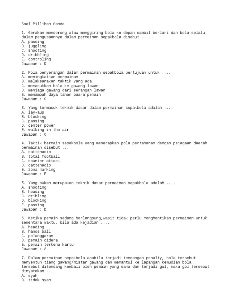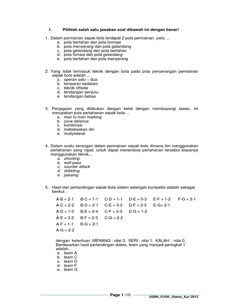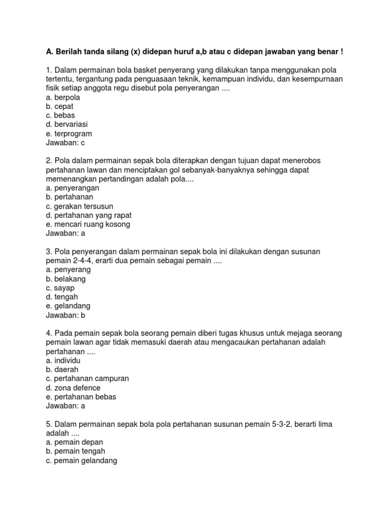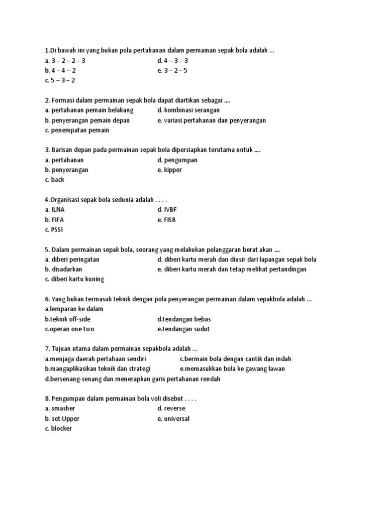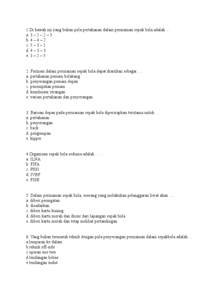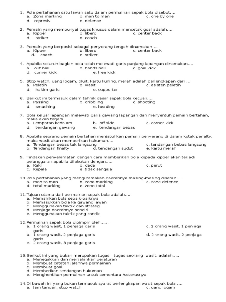Soal Latihan Pilihan Ganda Penjaskes Bab Sepak Bola Beserta …