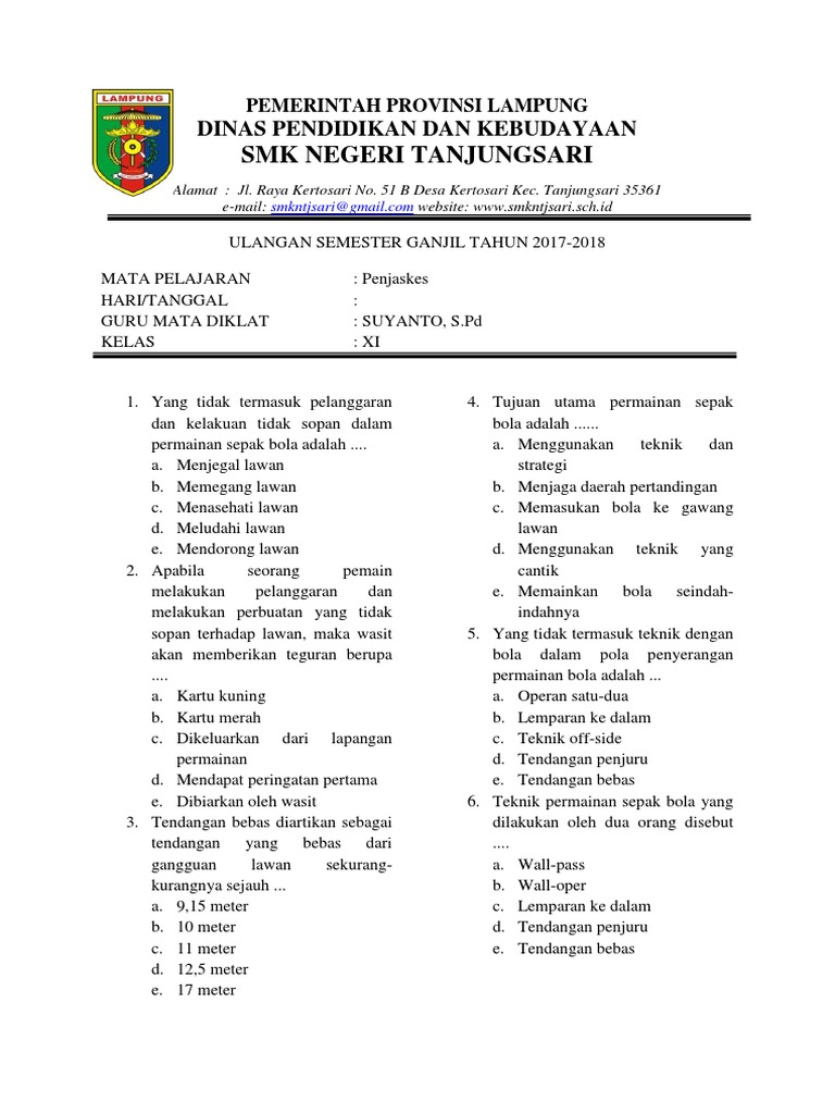 DOC) Contoh Soal UAS Penjaskes kelas 3 SMK | Annisa Kusuma …