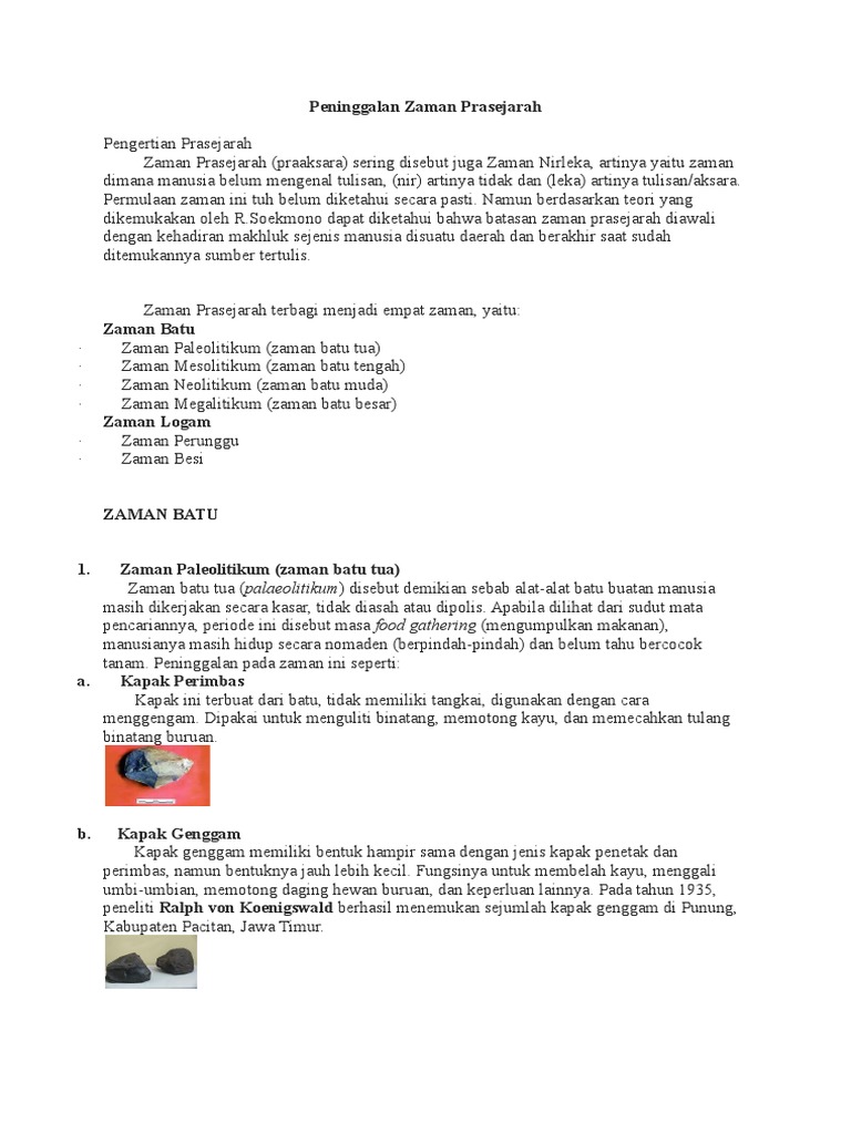 Zaman Prasejarah Berdasarkan Arkeologi Halaman all - Kompas.com