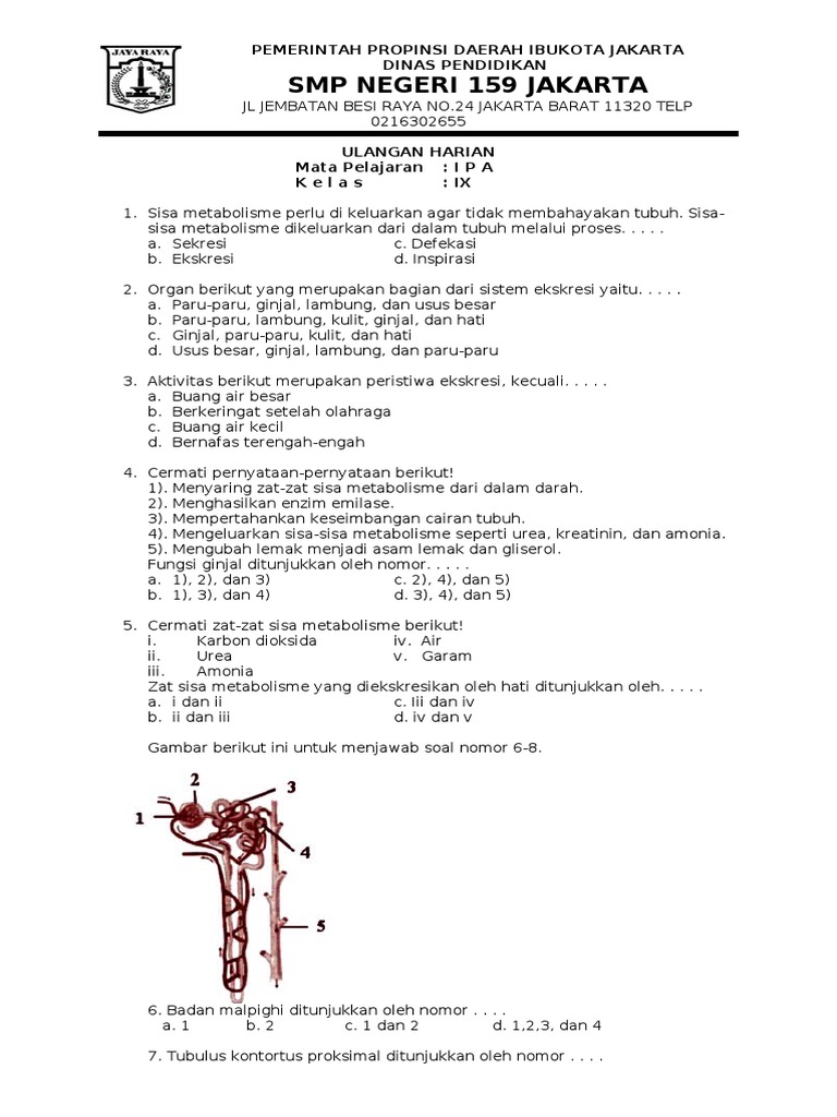 Soal Biologi : Sistem Ekskresi Manusia - Hewan & Jawaban - Muttaqin id