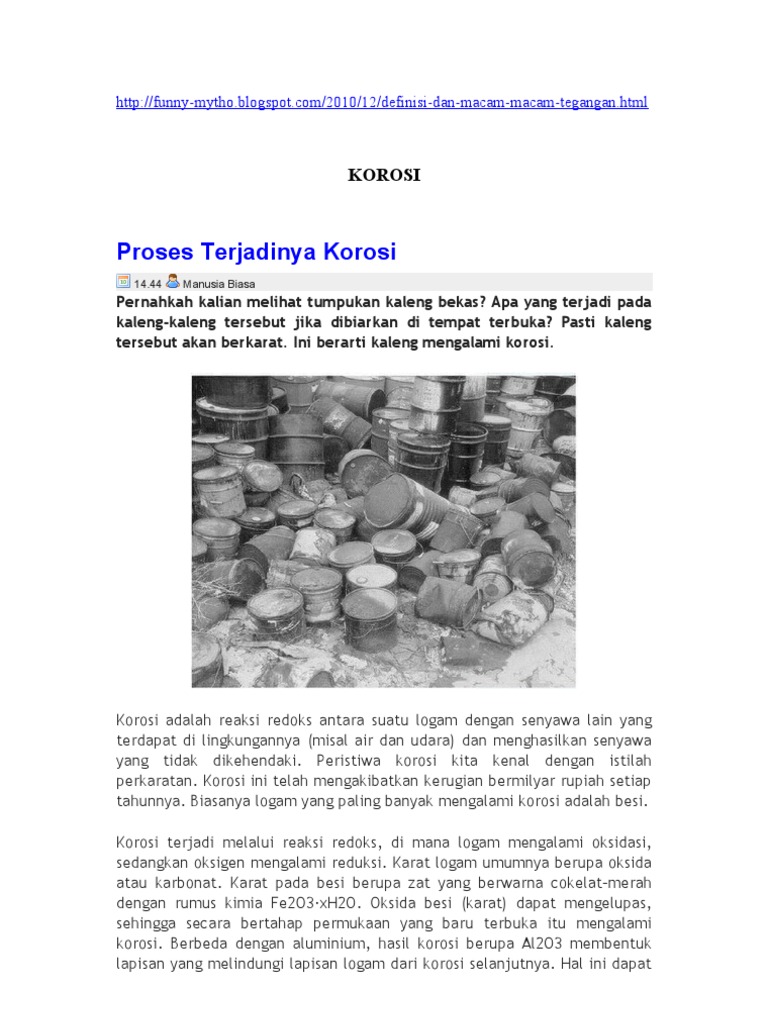 Zat Yang Menyebabkan Karat Pada Kaleng - Berbagai Sebab