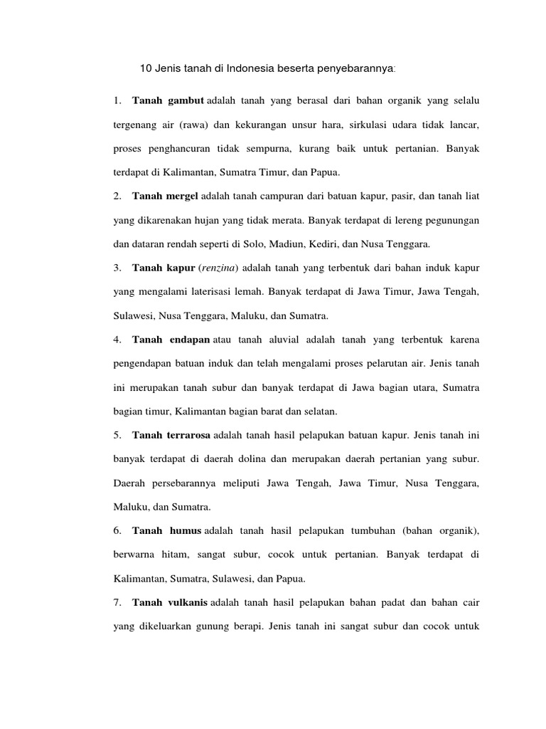 10 Jenis Tanah di Indonesia, Ciri, Manfaat, dan Persebarannya - Muttaqin id