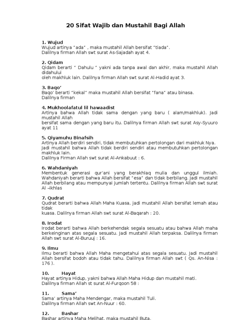 Da 20 sifat wajib dan mustahil allah yang wajib diketahui setiap musl…