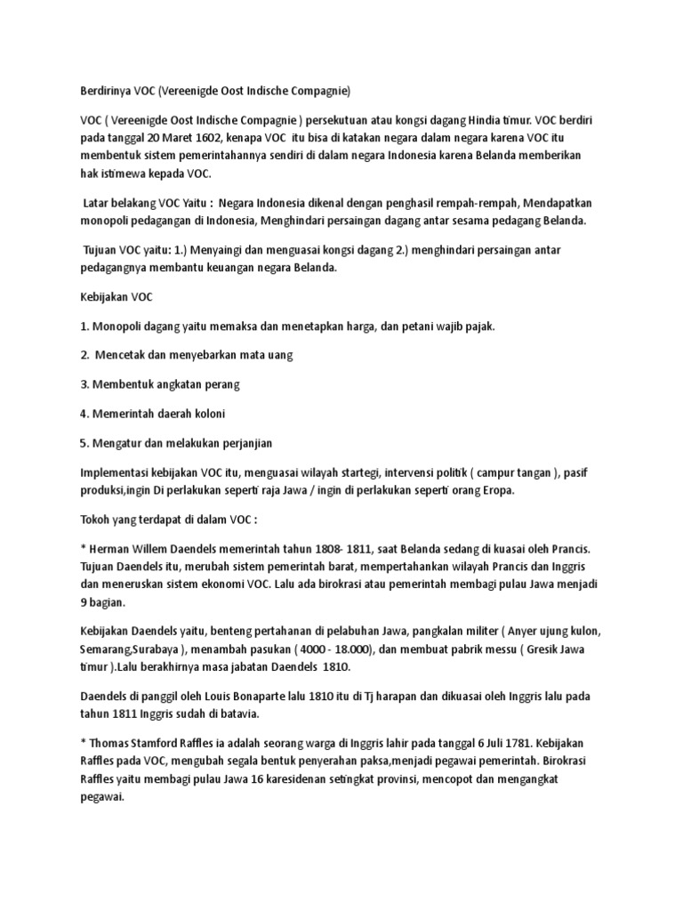 Jelaskan faktor Penyebab keruntuhan VOC | Sejarah | Hisham.id