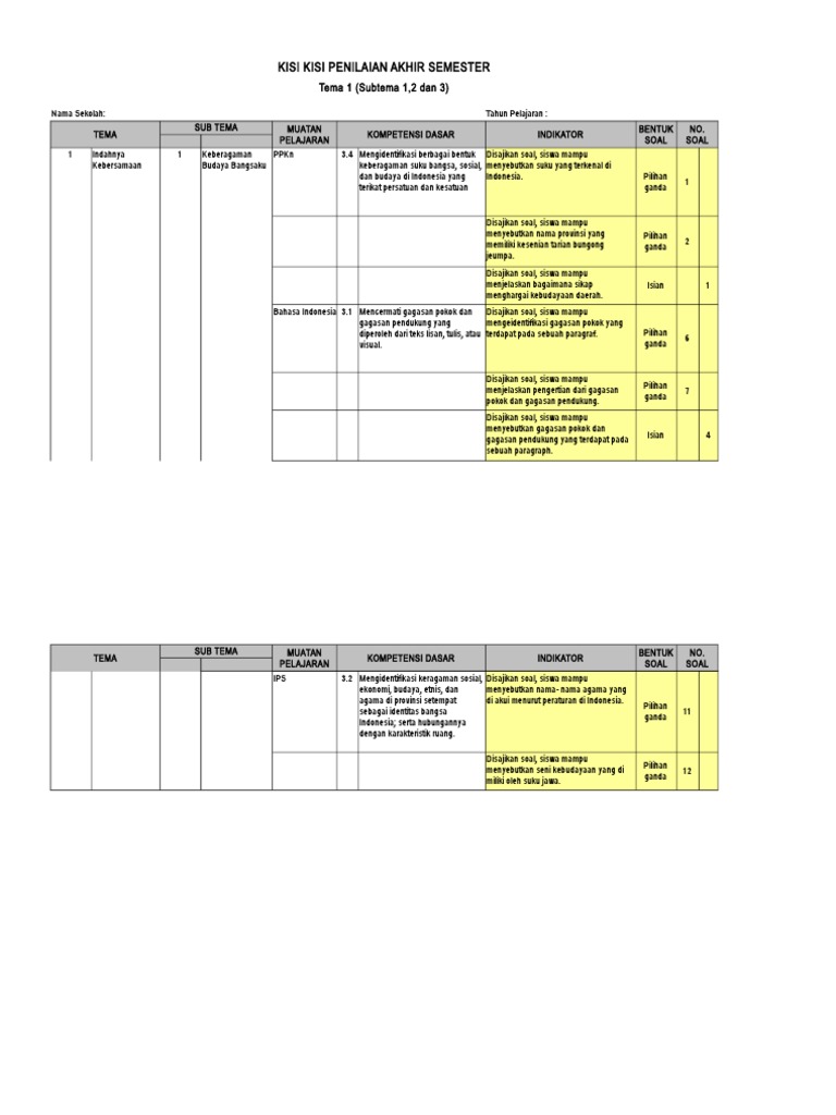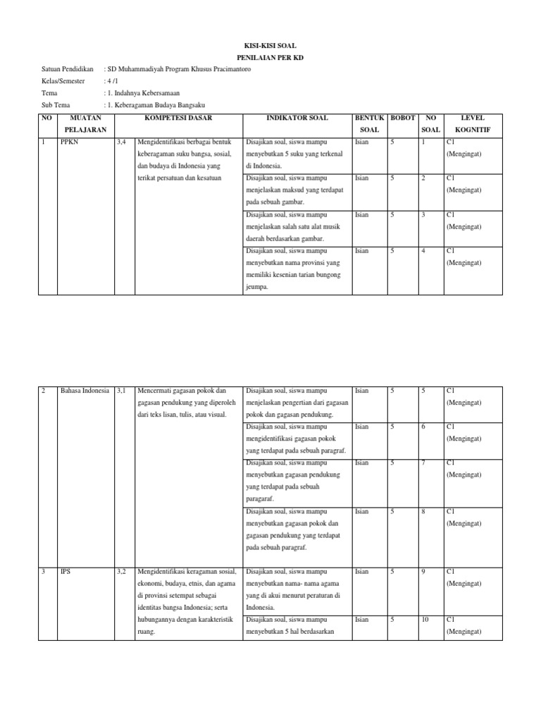 Ki-3 Kisi Kisi Tema 1 Sub 1