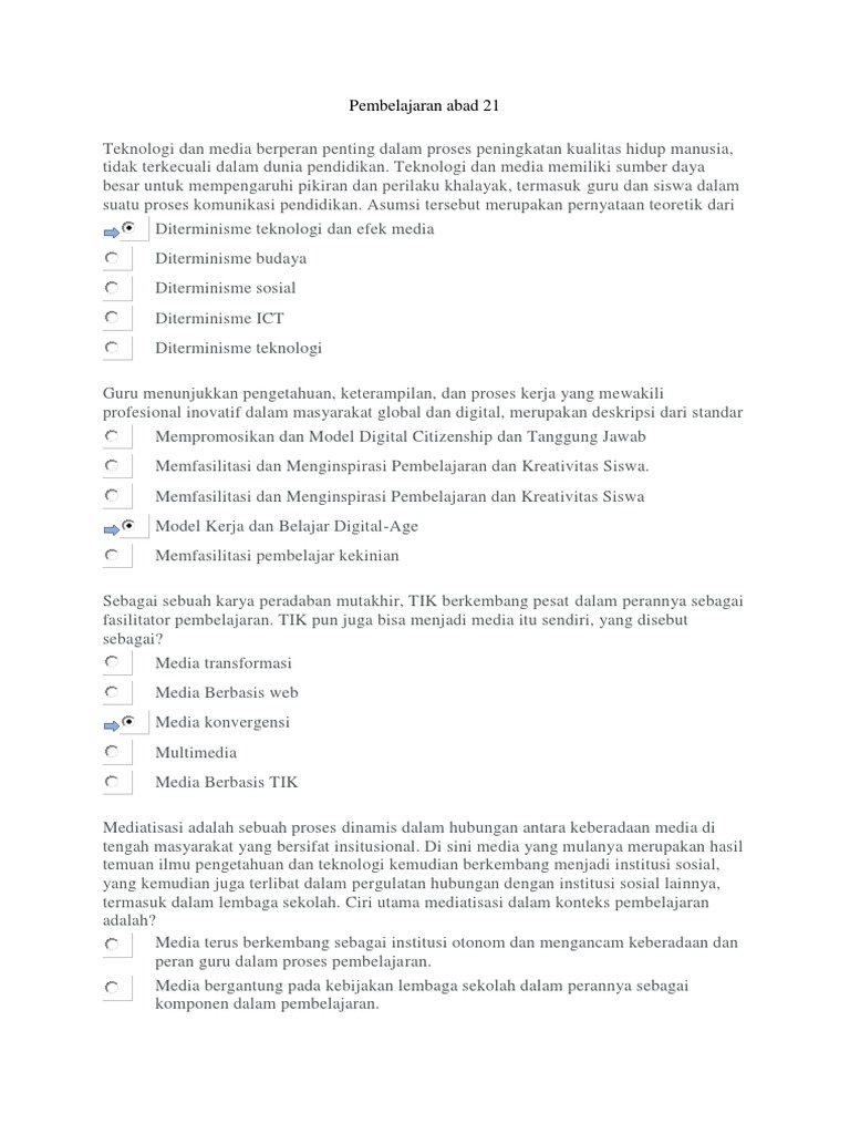 TES KB 1 (Karakteristik Guru dan Siswa Abad) 21 M 1 (QUIZ) Nilai: 10