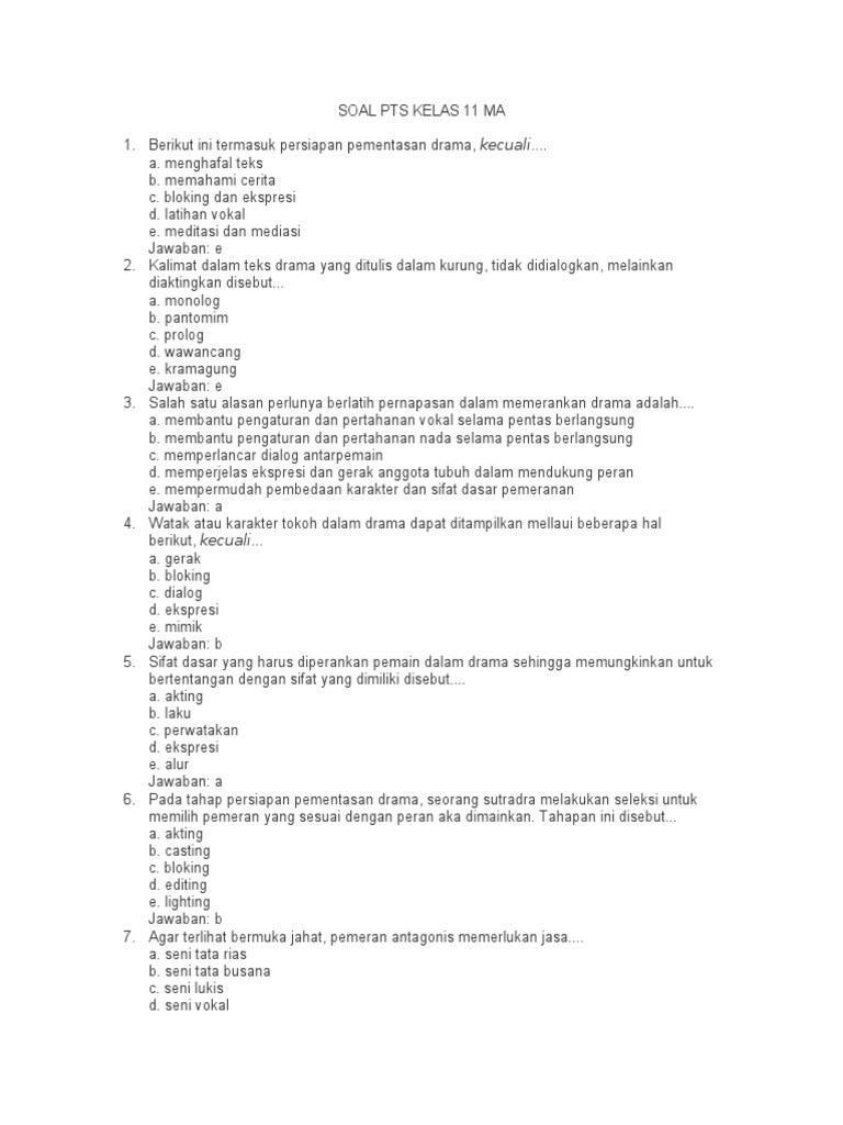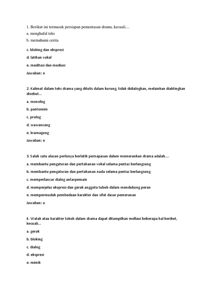 Contoh Soal Drama Pilihan Ganda dan Kunci Jawaban