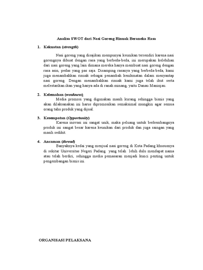 Analisa SWOT Dari Nasi Goreng Rinuak Beraneka Rasa
