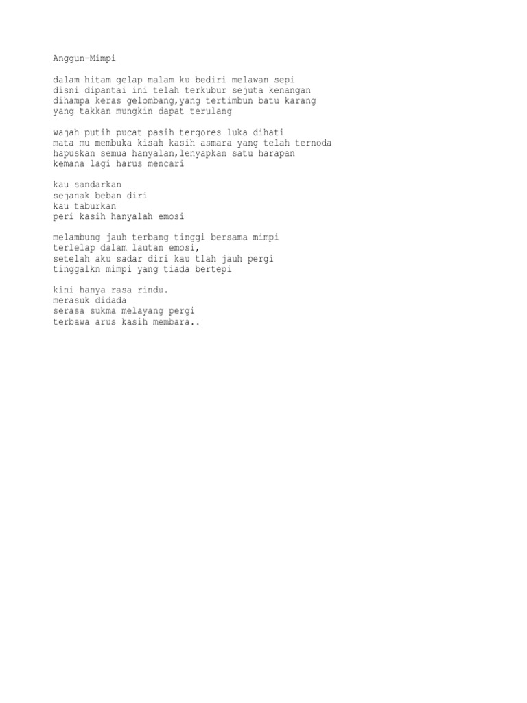 3.45 MB] - Mimpi Lirik Format Audio Mp3 Terbaru, Video Mp4 Terbaik …